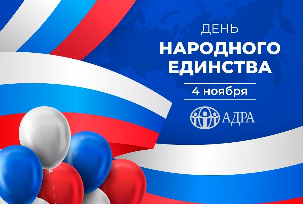 Дорогие друзья и соработники, Общероссийская общественная организация «Центр по оказанию помощи АДРА» поздравляет вас с Днём народного единства!
